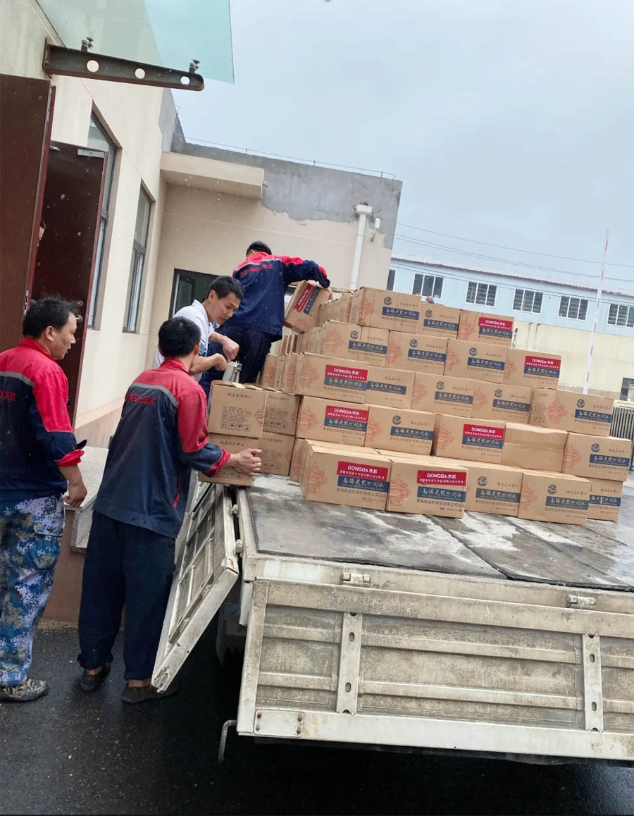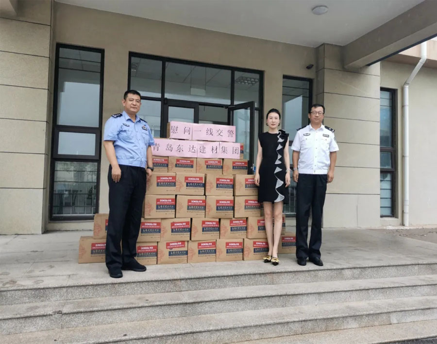 8月5日,集團總經理張娟帶隊,將500箱礦泉水送達嶗山區(qū)交警大隊。