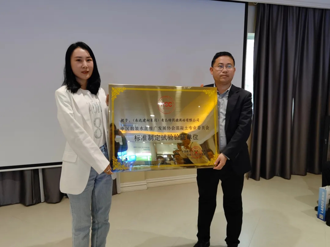 3月29日,透水混凝土、濕拌砂漿生產(chǎn)與應(yīng)用技術(shù)暨《濕拌砂漿應(yīng)用技術(shù)規(guī)程》宣貫培訓(xùn)活動(dòng)圓滿落幕,中國散裝水泥推廣發(fā)展協(xié)會混凝土專業(yè)委員會正式認(rèn)定青島特固德商砼有限公司為“標(biāo)準(zhǔn)制定試驗(yàn)驗(yàn)證單位”并現(xiàn)場授牌。